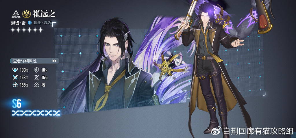 崔神在三测时因为bug而表现的过于逆天,终于在四测喜提修复,但他仍然可以稳坐雷c第一的宝座。队长技“狙击”对三角角色远距离输出的提升也是非常给力。总的来说老崔十分适合队伍中缺少强力远程输出角色或者想要玩雷火,水雷等队伍的监督使用,三测时与昊苍的双狗组合,可以说是秒天秒地秒空气,是短时间爆发阵容中的强度天花板,唯一的缺点就是需要两个六星。而四测火属性地形下放到了众多火属性角色中,更是使雷火队的造价和使用难度有所降低。但前期开荒时的白板崔远之并不是太好用,属于是下限低上限高的c位,新人监督用起来可能会有坐牢的感觉。