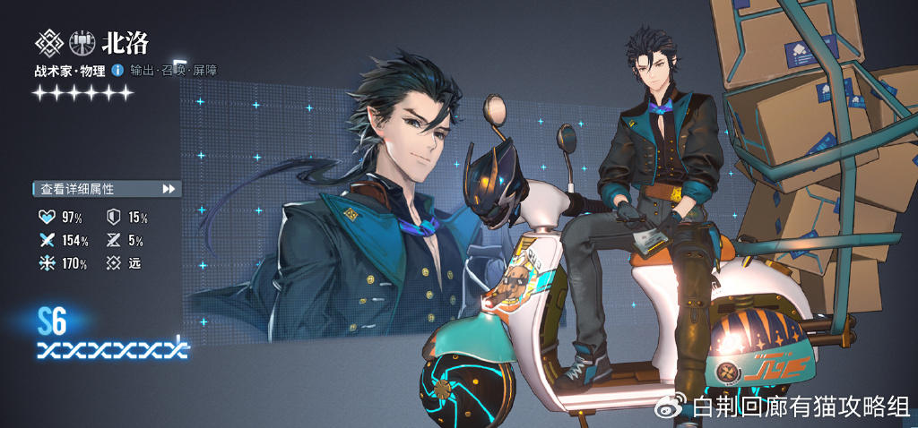 这不是王皮鞋嘛,古剑玩家应该不会陌生吧。我们的王皮鞋来到异世界也还是免不了四处奔波跑任务的命运,在森罗当起了一名快递员。队长技“战术强化”目前没有替代烙痕,作为队长时只要队内战术家和护佑者释放增益技能时就能给予全队激励效果,是前期烙痕不够丰富时获取激励的极佳手段。其整体定位偏向于功能性同时也具有一定的输出。他的技能集屏障、穿透屏障、嘲讽、拦截投射物、提升全队攻击力等功能于一身,十分全面。再加上主线送的ssr烙痕合适,物理召唤队可以说是最容易成型的队伍了,所以对想玩物理召唤队的监督们来说,北洛是个非常不错的选择。