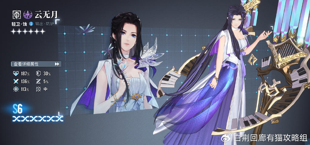 四测新加入的角色,蚀队更进一步的绝对核心,能抗能打的六边形战士,外加古剑三带来的超级人气加持,相信会有不少监督不管不顾地选择云大佬。她的队长技能“蚀之激励”在蚀队时能快速获得激励效果,更是解决了开荒期队伍激励上的需求。但是,因为蚀属性的特殊性,再加上云无月的技能也是更偏向于同为蚀属性的队友,而蚀属性的几个角色,都是五星角色,要知道,倒霉的时候,五星甚至比六星更加难得,可能选了后一时间玩不到云大佬的主场配队。当然,即使是不组蚀队,凭借云无月独一无二的增伤机制,在其他队伍做一个辅助轻卫也还是很好用的,可以说选了也不会亏。