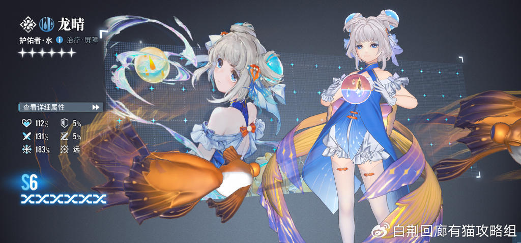被动技能可以持续治疗,技能有屏障+伤害,可以让队伍在没有三角职业时也能处理空中单位。队长技能“屏障·水”十分好用,配合低星的田诺开场即可快速叠激励,再借上一张「参商形影」又能每6秒叠加一层,可以作为生存位组合搭配进许多阵容。给全队回血的同时还能附加免伤,作为水元素角色也能在水队,水雷,水霜等队伍中进一步提升队伍的上限。缺少生存位的监督可以按需选择。