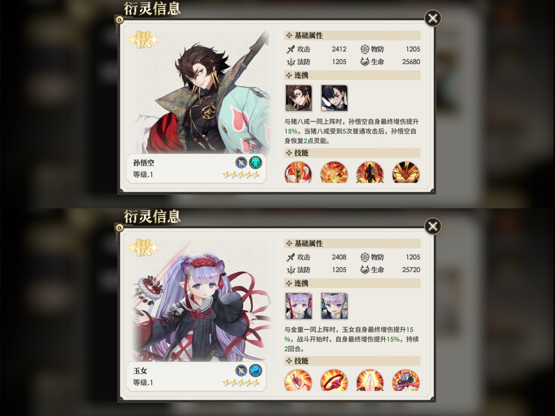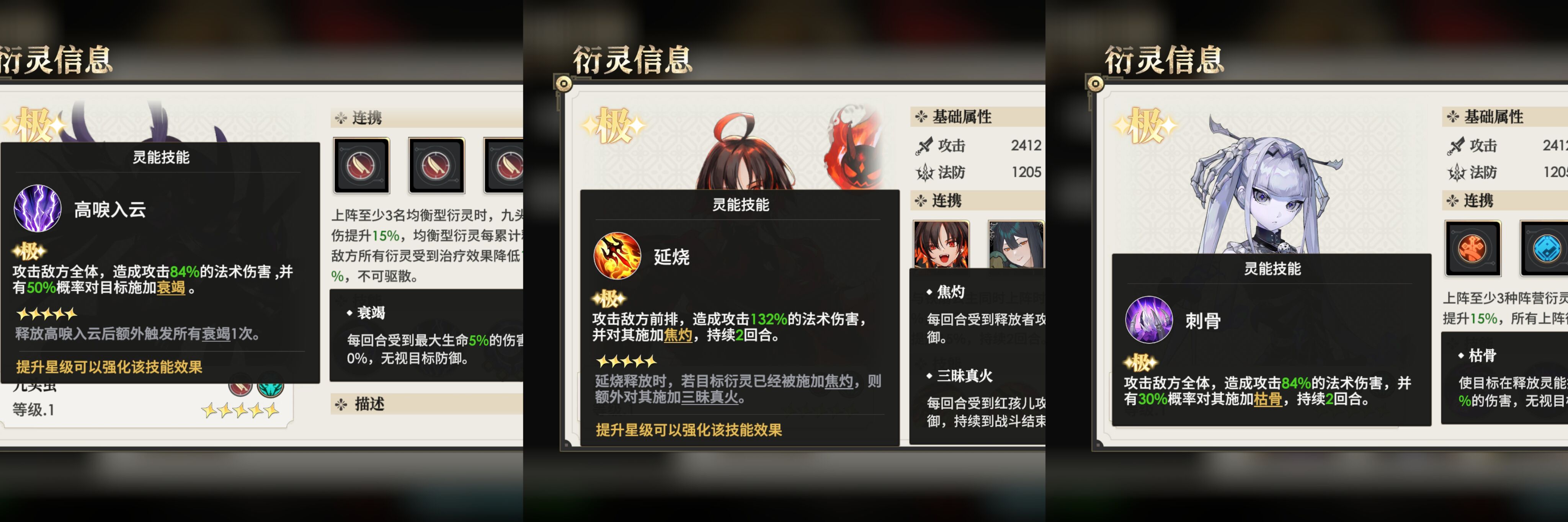 比如:输出类的洐灵就优先升级加攻击力的2号位和4号位灵韵。