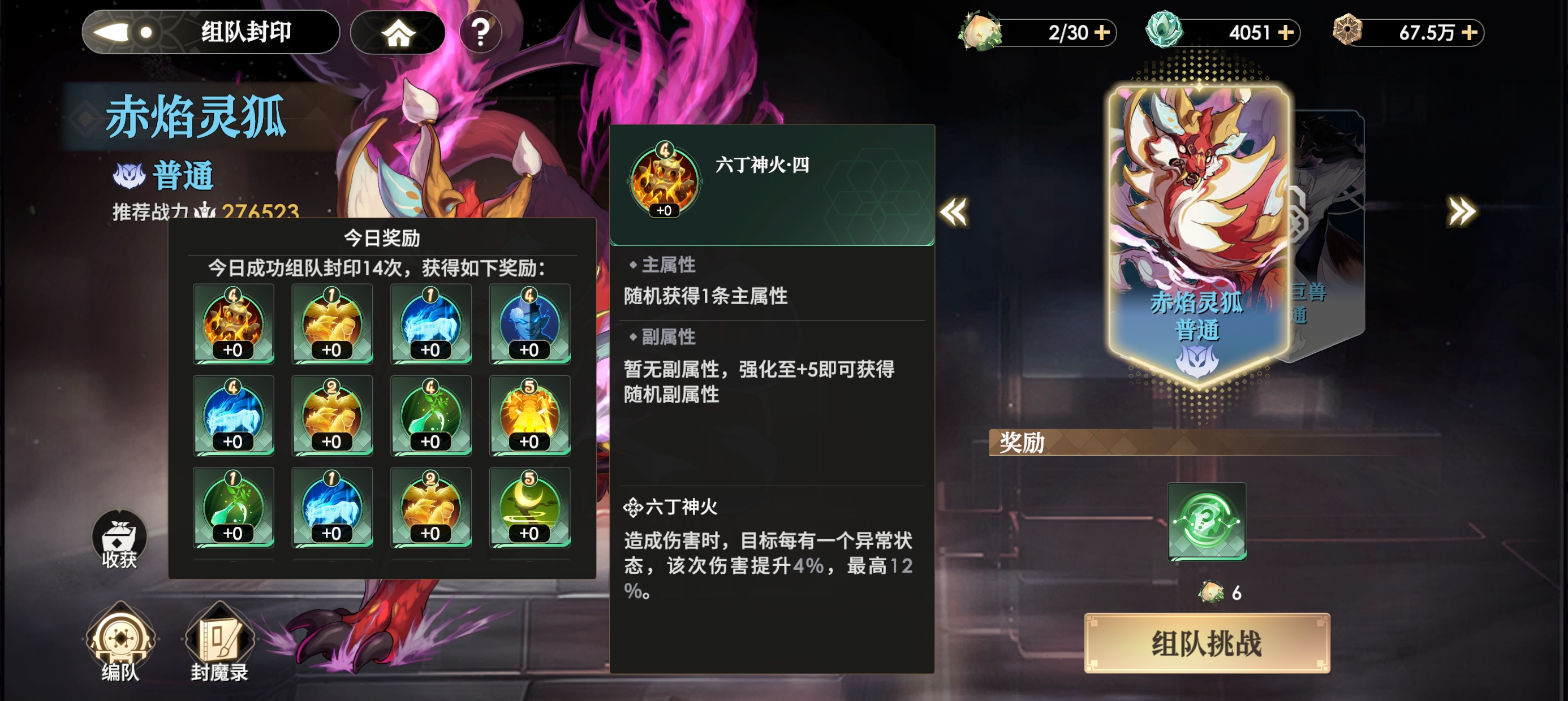 ③【六丁神火套装】搭配推荐:作用是:目标每有一个异常状态,该次伤害得到提升。