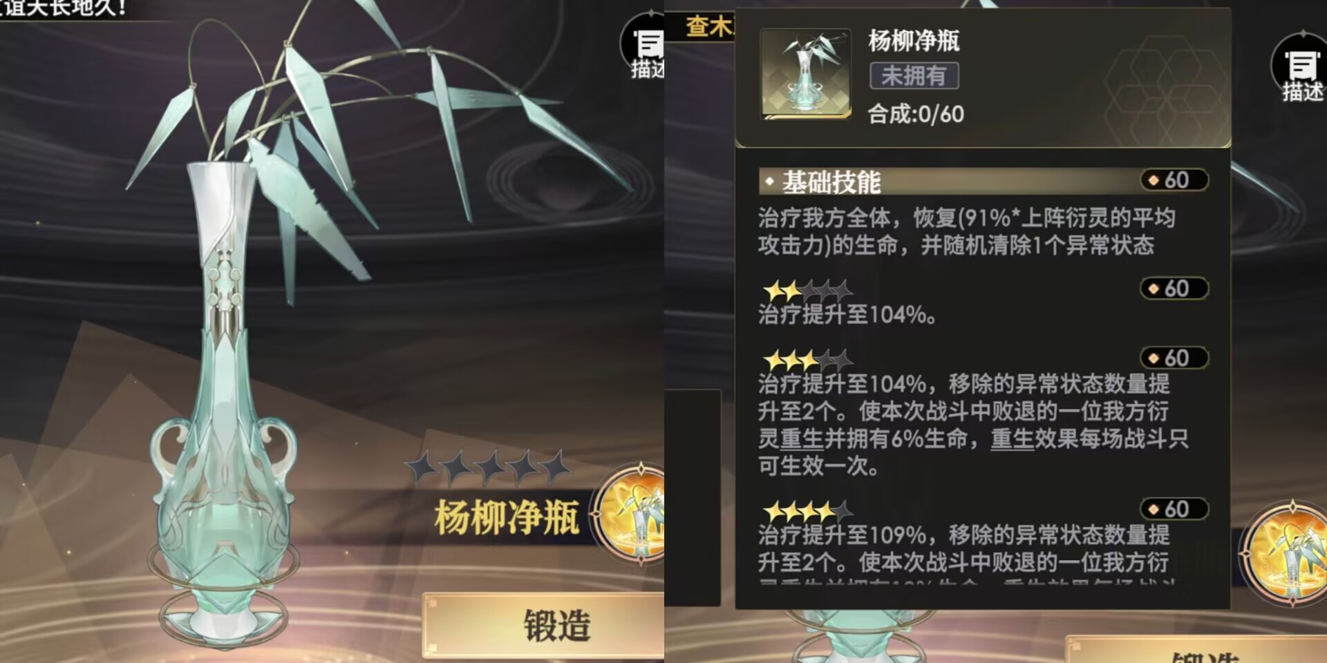 解析:治疗我方全体成员生命,并且可以清除1个异常状态。满星后可以随机清除2个异常。