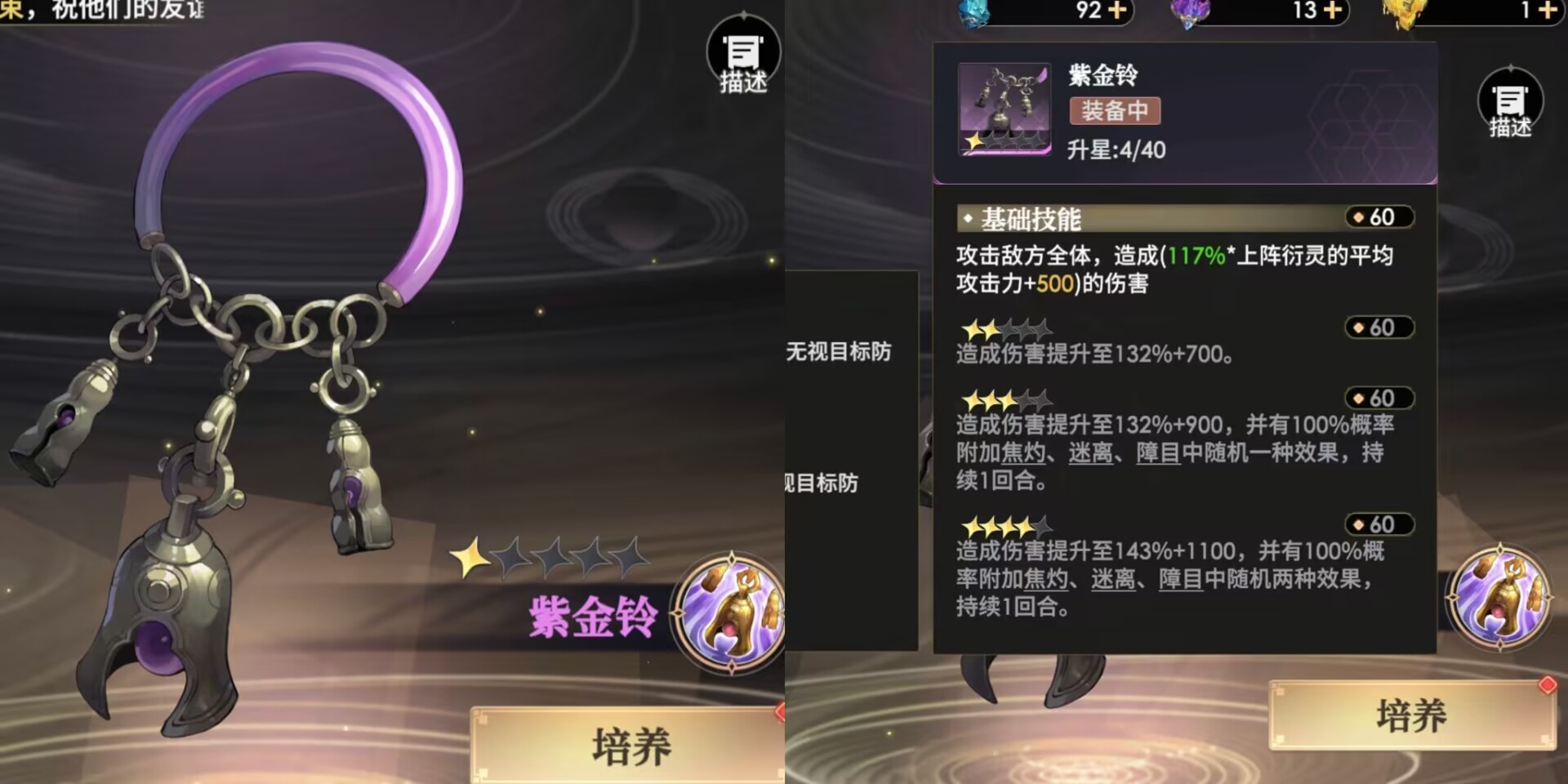 解析:紫金玲属于新手阶段送的法宝之一,法宝技能是全体输出。