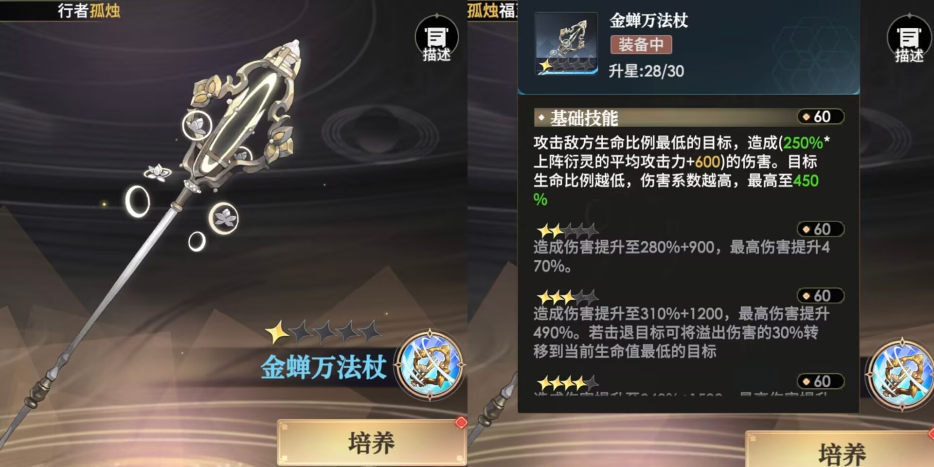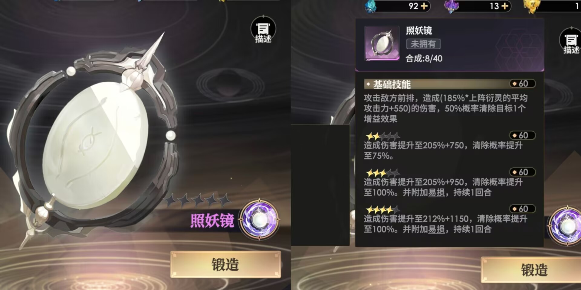 这个法宝对前排打击后还可以清除目标增益和增加易损状态,满星后清除增益变为2个。