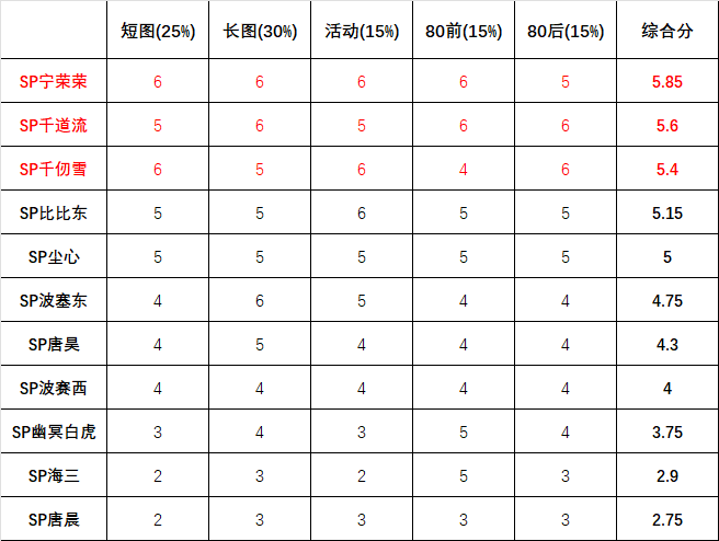 所以在前两天维一刚写的全SP魂师强度节奏榜文章中,SP宁荣荣也凭借着绝对的优势稳居第一,并且算上后续真身威压技的问题修复,以及最新头部进化魂骨的上线,上表中的SP宁荣荣的综合分数就可以被提升到夸张的满分6分了,也就是说SP宁荣荣在目前的各个玩法下都是绝对人权卡般的存在......外加一个附带的“九宝琉璃塔”神器加成,SP宁荣荣的重要性只能说是无以复加了。