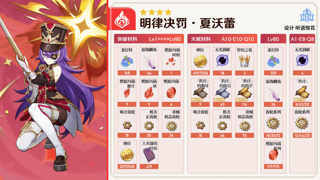接下来将由阿空来带大家深入了解夏沃蕾的养成材料、技能机制、加点建议、武器推荐以及实战配队