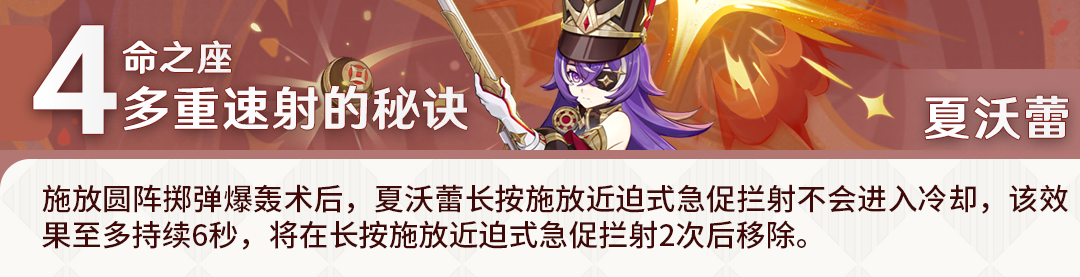 夏沃蕾可通过解锁命座,获得更加全面的辅助能力,以及更加强大的她自己。