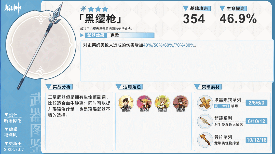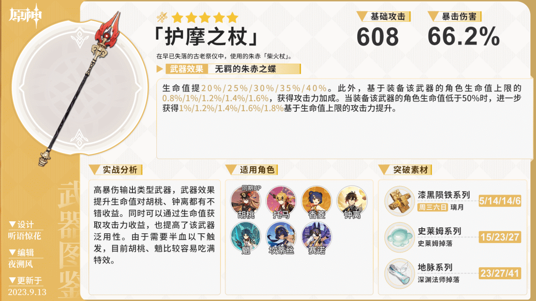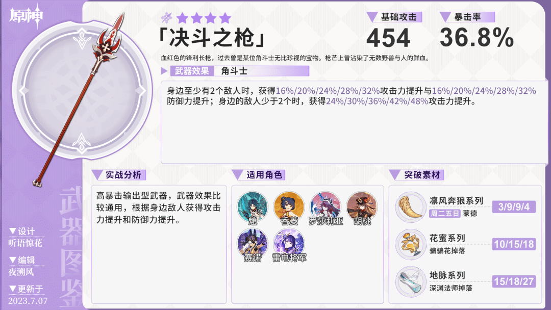 解析:五星中加生命值的输出枪,使夏沃蕾的天赋能提供给队友多一点加成的同时,最大化自身的输出,是当前版本最契合夏沃蕾的输出枪。