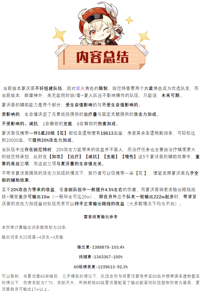 解析:对队伍中的角色种类进行了限制,神似妮露,但与妮露不同的是,[协同战法]的效果并不需要夏沃蕾进行额外操作,只需要她在队伍中且队伍中角色种类满足需求即可。降低抗性的数值为40%,追平风套,还可后台触发,十分慷慨。