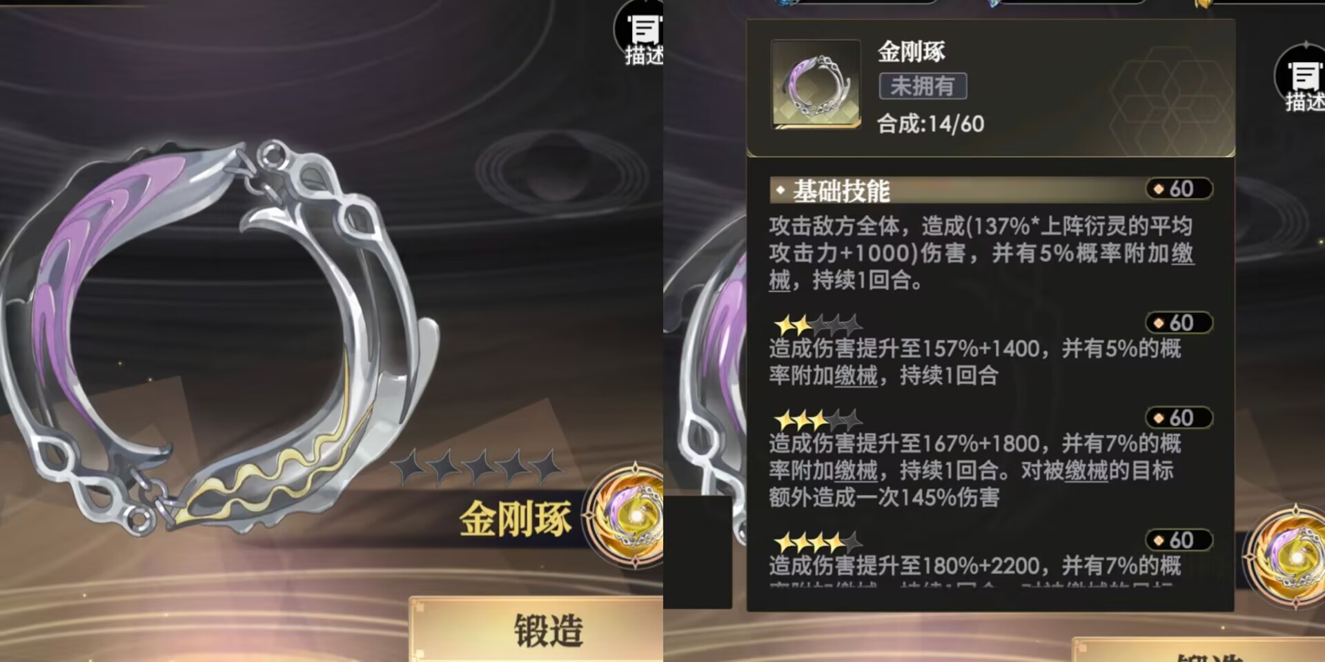 玲珑宝塔拉到3星以后,就做【金刚琢】,金刚琢1星就可以,主要是用来pvp搭配【玲珑宝塔】使用的。