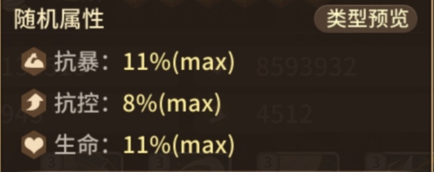 右边神装:其中由于当前版本下的蛾子精灵,抗控是必须要的。抗暴的话,可以选择带一个,优先级不如以前那么高,主要是因为当前版本下暴击率溢出,但是带着还是比较好的。剩下一个词条可以选择防御,通用性比较好,其次就是物免和法免看是否针对战士队或者法师队,如果是走闪避的队伍可以洗闪避,需要卷速的人马或者嫦娥可以洗速度。
