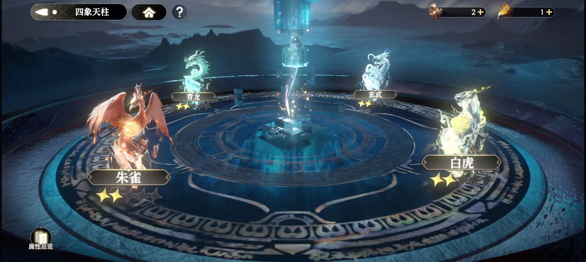首先天柱一共分为四个,分别是朱雀、青龙、白虎、玄武。