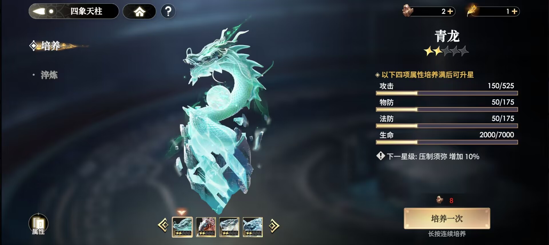 ⭐每次粹炼可以获得1个随机【琼玉】,琼玉是装配上天柱孔位的从而加成天柱的基础属性。
