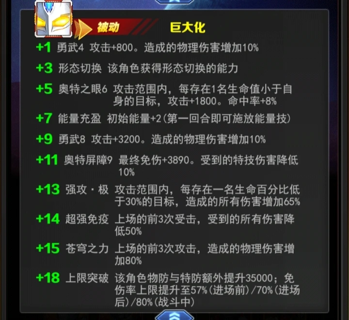 +11奥特屏障9最终免伤+3890。受到的特技伤害降低