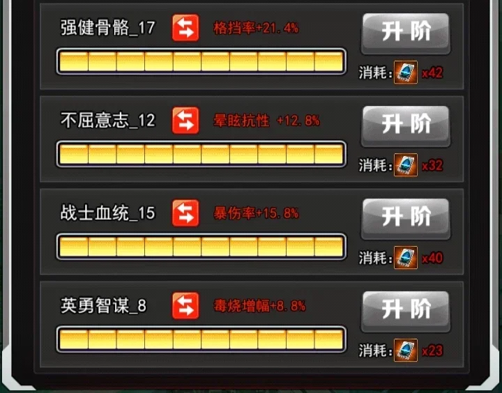 解析:增加格挡率为后续的被动造成了一个有利的响应,因为后续的被动是需要隔档来回血的,所以格挡率越高,回血的几率越大越大。所以在修炼方面就可以选择抗爆格挡流,这样就可以把回血量回血的概率和次数提高得更高一点