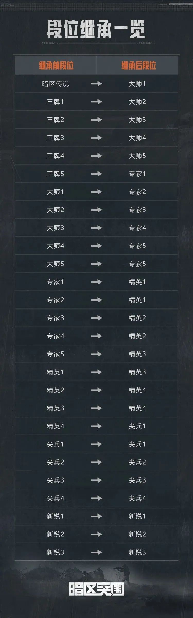 段位将在S6赛季结束后进行重置并继承段位,对应继承规则如下:
