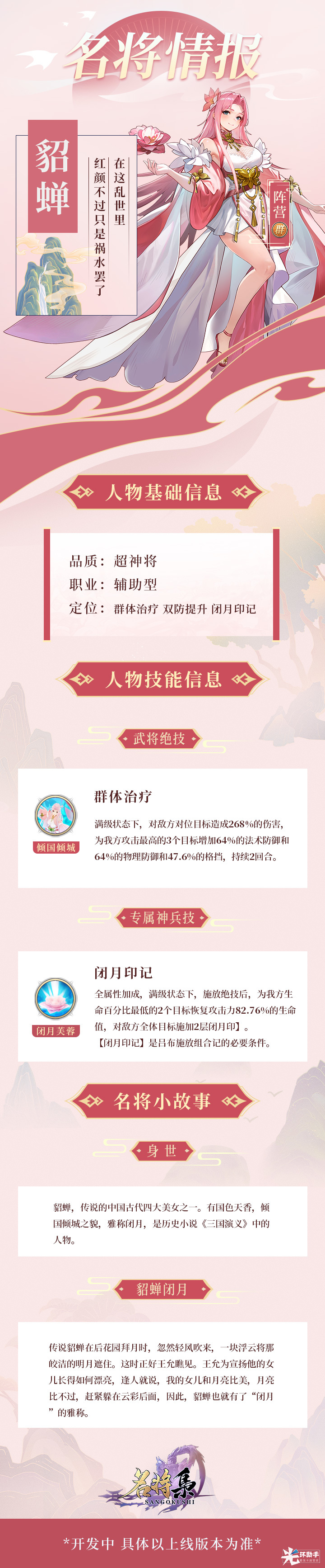 『名将情报』貂蝉勤勉搬运的后辈君发布于 2024-01-19关注今天婵宝给大家带来的是貂蝉的情报介绍快和婵宝一睹为快吧~ 貂蝉技能展示:(画质压缩严重,实际体验更佳)貂蝉 吕布组合技能展示:(画质压缩严重,实际体验更佳)