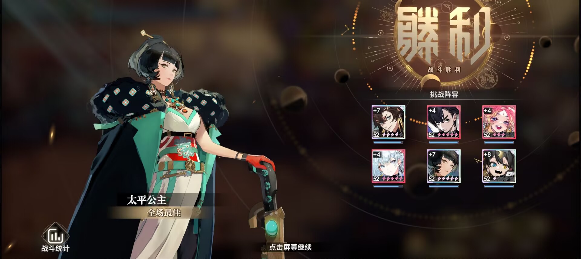 太平公主觉醒1星后如果敌人在太平公主当前回合败退,太平公主是可以额外获得新回合的。