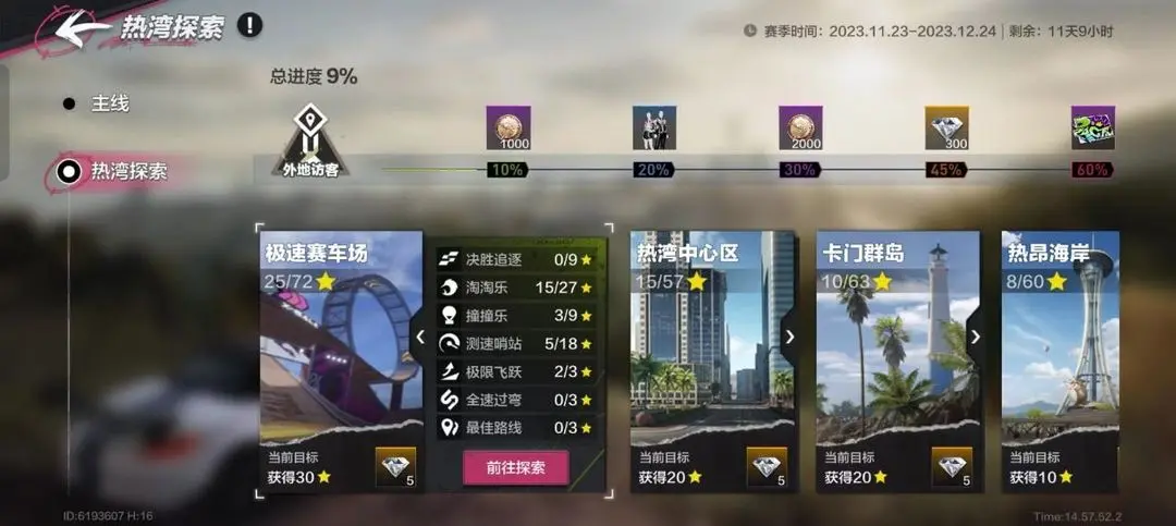 每撞破一个“淘淘乐”气球,都能够获得3颗星星,这些星星可以与其他热湾玩法获得的星星累积起来,解锁每个区域的丰厚奖励!玩家们可以在“地图-挑战”界面中查看自己在每个区域收集“淘淘乐”的进度和已经发现的“淘淘乐”气球的位置;也可以从“任务-热湾探索”界面查看奖励的解锁进度并领取奖励!