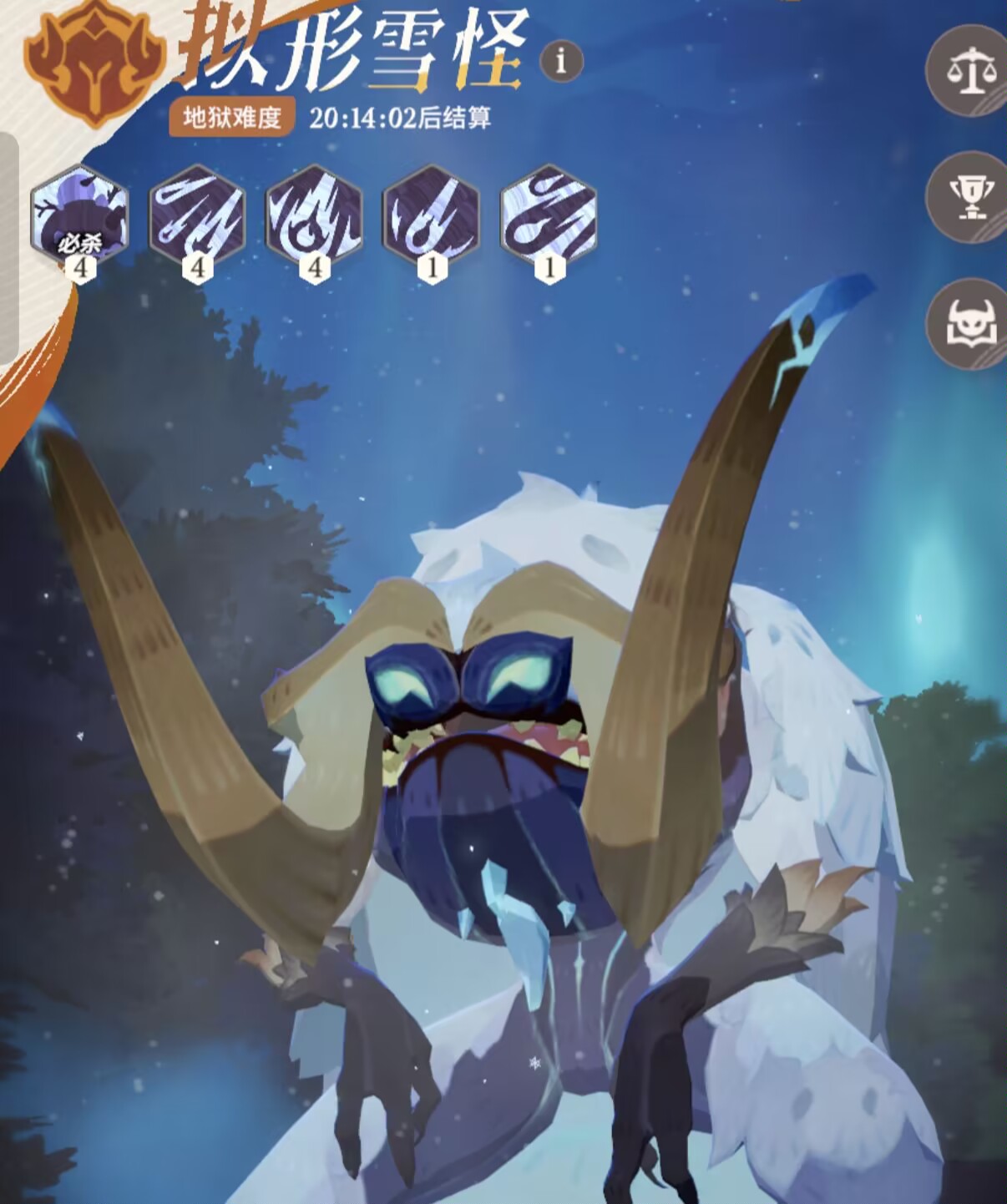 ②【拟形雪怪】1技能为:寂静风雪。在固定时间内释放,持续20秒,这个技能是boss的核心技能,伤害也不高,主要是可以沉默我方全体目标,让我方所有英雄无法释放技能,比如奶妈无法释放治疗技能,就会导致我方减员的几率大幅度提升。