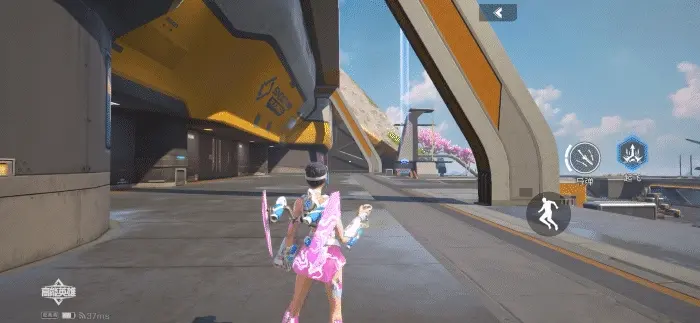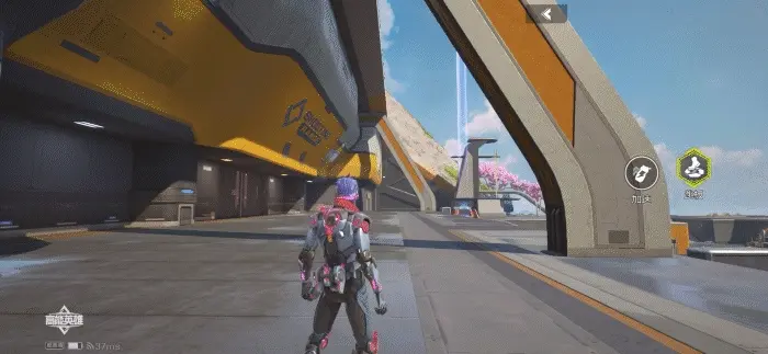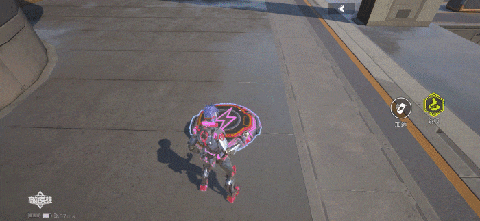 绝招技能展示:绝招丢出的跳板变成了机甲风格的紫色,二段跳时释放的机甲能量也是十分炫酷。