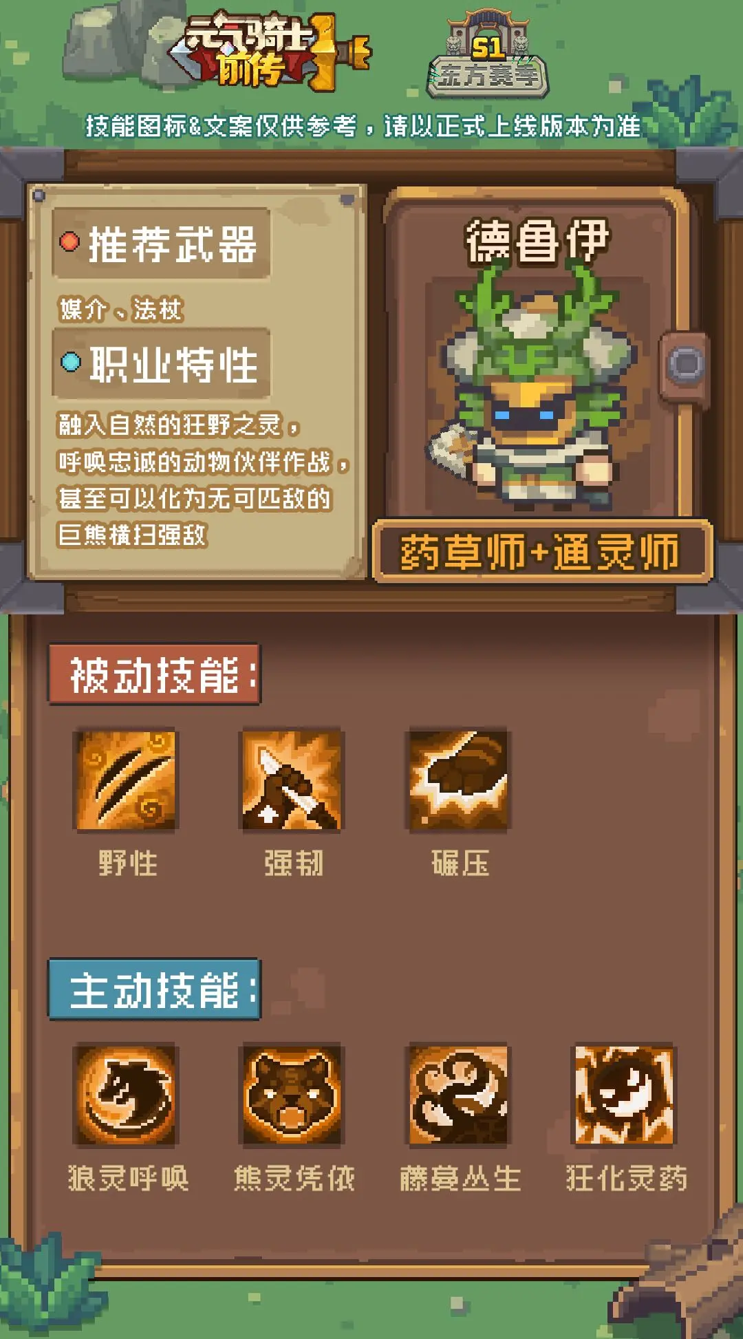 德鲁伊是由药草师和通灵师组合的混合职业,不光能召唤灵卫和动物协助作战,自己也能变成动物参与战斗!