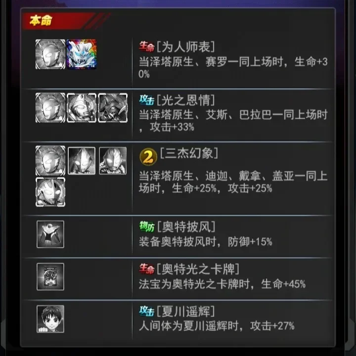解析:这个就属于一个奥特之眼的加强版,存在一个生命力低于50%攻击加7200相当于快加了1万的攻击力,但是这个触发条件比较低,要50%以下,在50%以下的基本只有对面的主力了,而且对面炮灰在主力的一个大招下基本都是秒掉的,所以这个被动很难触发,攻击范围内存在一个小明小于自身50%的生命值暴击率增加63%,这暴击率增加的是很不错的。但是由于触发条件有限,所以强是强,就是这个低于50%比较难触发一点