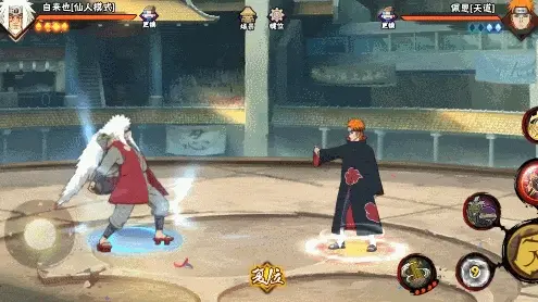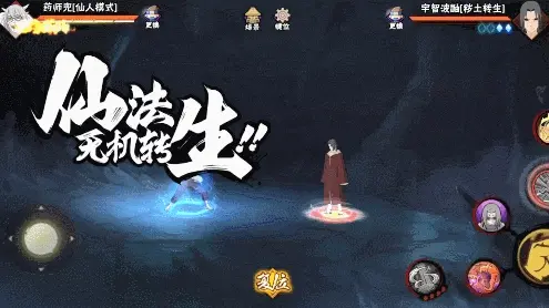 蛤蟆仙人自来也在开启仙人模式时,会召唤出深作仙人和志麻仙人协助作战。两大仙人不但可以延长仙人模式的状态,还能自来也配合使出的仙法·五右卫门。油、风遁、火遁三种术的配合,让仙法·五右卫门有着能将一切有形物质燃烧殆尽的威力!