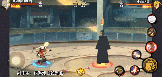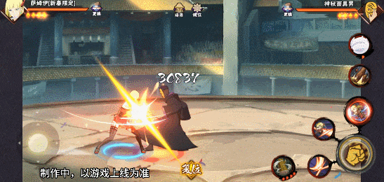 攻击被标记的对手时,新春萨姆伊向前突进,跃至对手的肩上抓取对手,随后使出强力的十字斩!