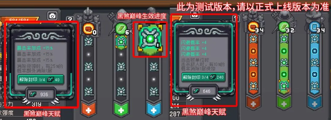当基础巅峰加点到达能够解锁黑煞巅峰的点数后,黑煞巅峰并不会立即生效。小骑士还需要消耗黑煞结晶解锁黑煞巅峰天赋(共4层),每层封印将对应一个收益,当解除最后一层封印,将获得与黑煞相关的独特能力。解除封印后的收益在账号下通用。