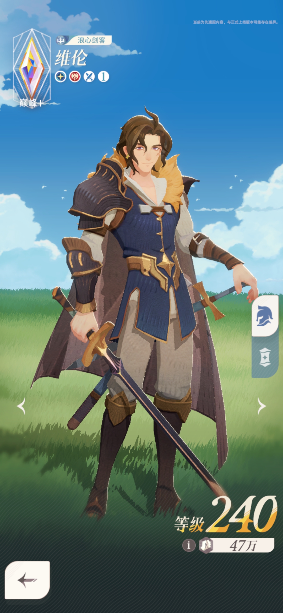 维伦属于输出型战士,综合门槛略高,技能伤害和强度依赖专属等级和觉醒。维伦主要特色在于小范围群体伤害,群攻能力较强,搭配充盈状态下攻击提升和额外攻击效果可以进一步提高维伦输出阈值,但维伦作为近战输出,控制能力依赖觉醒,前期相对吃亏且容易被击退等控制限制发挥,如果有其他强势控制型输出可以不培养。