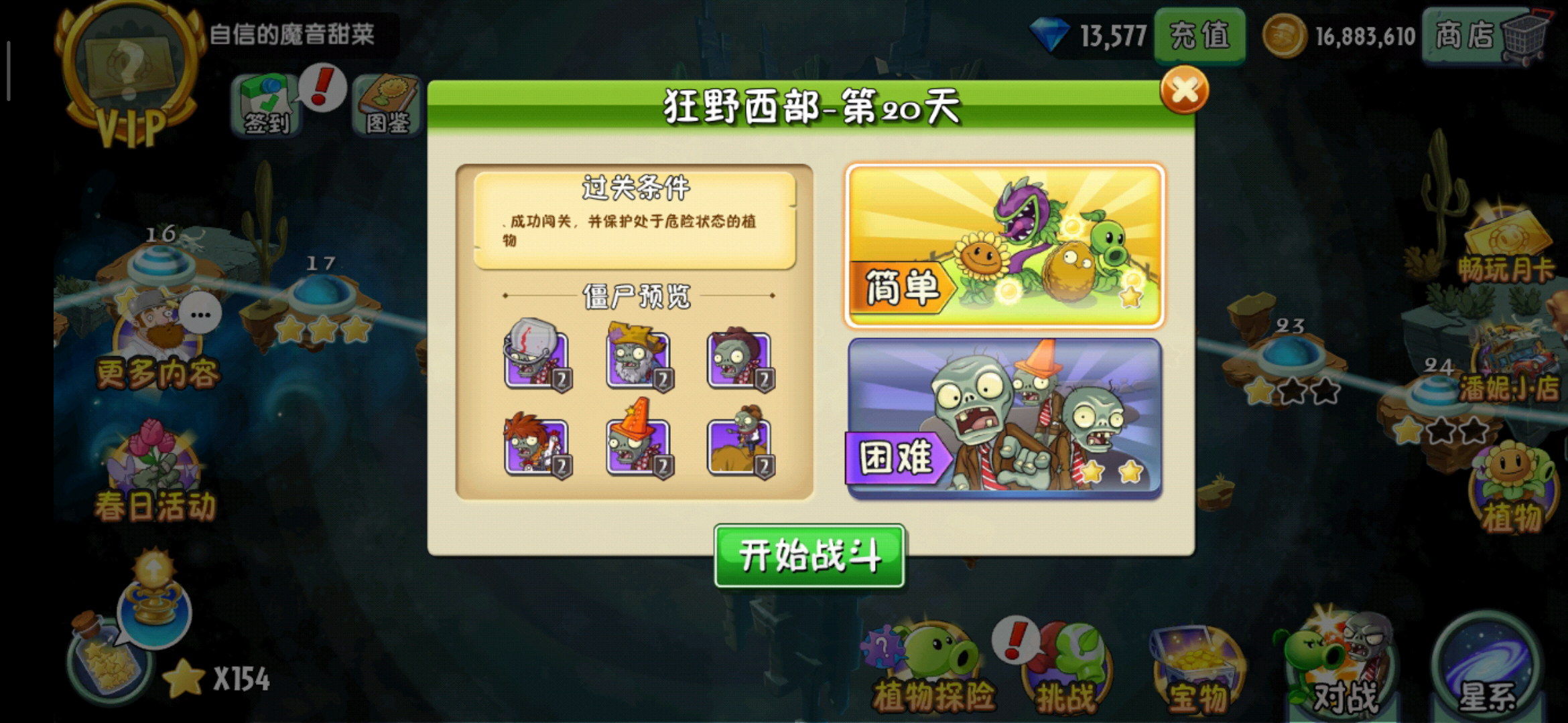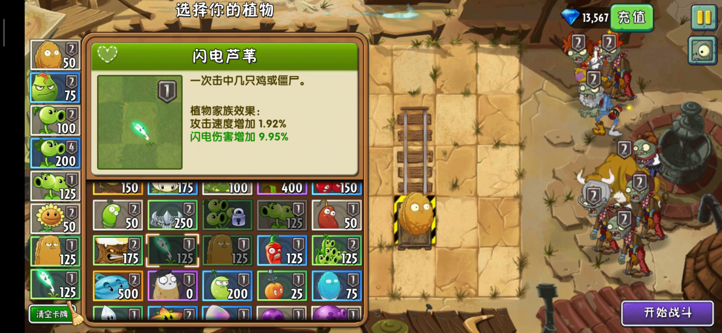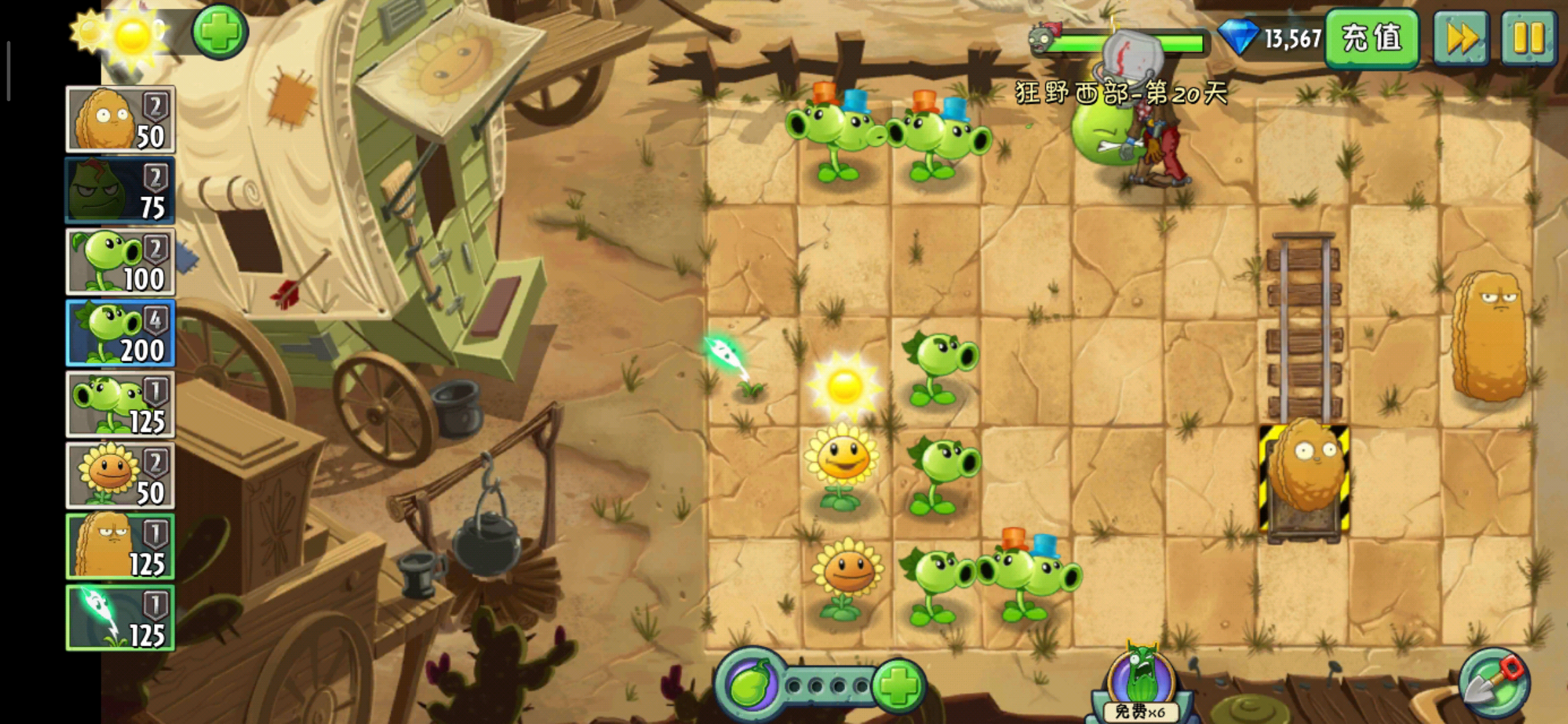 当然,第20天的难度增加不只是这一些,首先鸡贼僵尸和铁桶僵尸都来报道了,再加上淘金僵尸和机械牛,这样我们八个植物框基本是已经被安排好了,双向射手,高坚果,闪电芦苇,坚果,这四种植物是必然要存在的,然后向日葵,豌豆射手,岩浆番石榴,这些最基本植物的不能缺呀,那就只剩下一个位置了,在这里我建议是玩家们要留给输出高的植物,这个就按照玩家的喜爱来,我的话就比较喜欢双重射手或者猕猴桃。