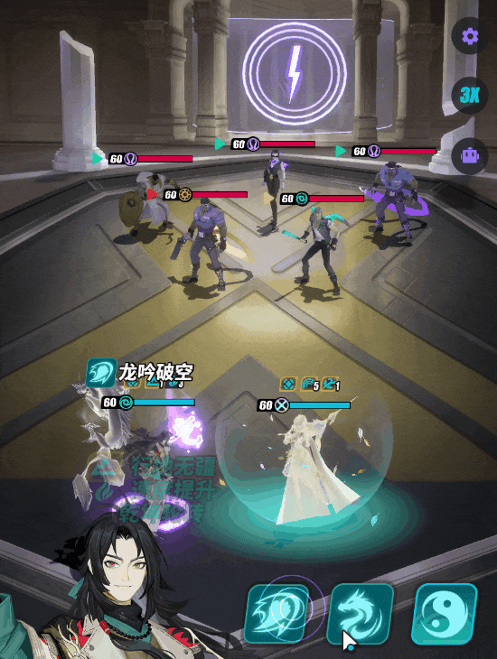攻击全体敌方1次,伤害为自身攻击力 30%和自身最大生命值 4%,并附加2回合【防御下降】。【山泽通气】期间:必定暴击且造成伤害后,附带自身最大生命值4 %的伤害。皮肤最终伤害量提升10%。冷却回合:3