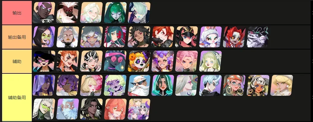 三辅助+两输出或者二辅助+三输出都行。没有输出,就从输出备用里面选,没有辅助,就从辅助备用里面选。随便选,随便用。橙色英雄不吃错技能就不亏,紫色和蓝色不上60级就不亏,以后都要用的。