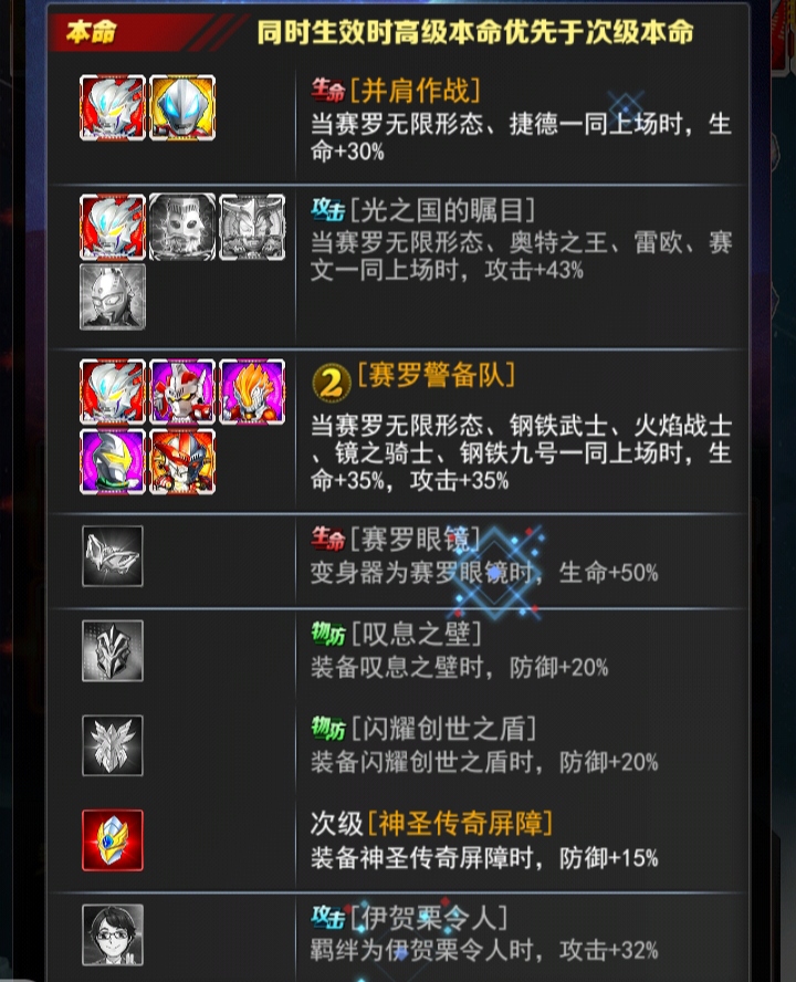 +12赛罗的决意 每次攻击后,[治疗]为己方生命百分比最低的目标恢复相当于攻击力100%