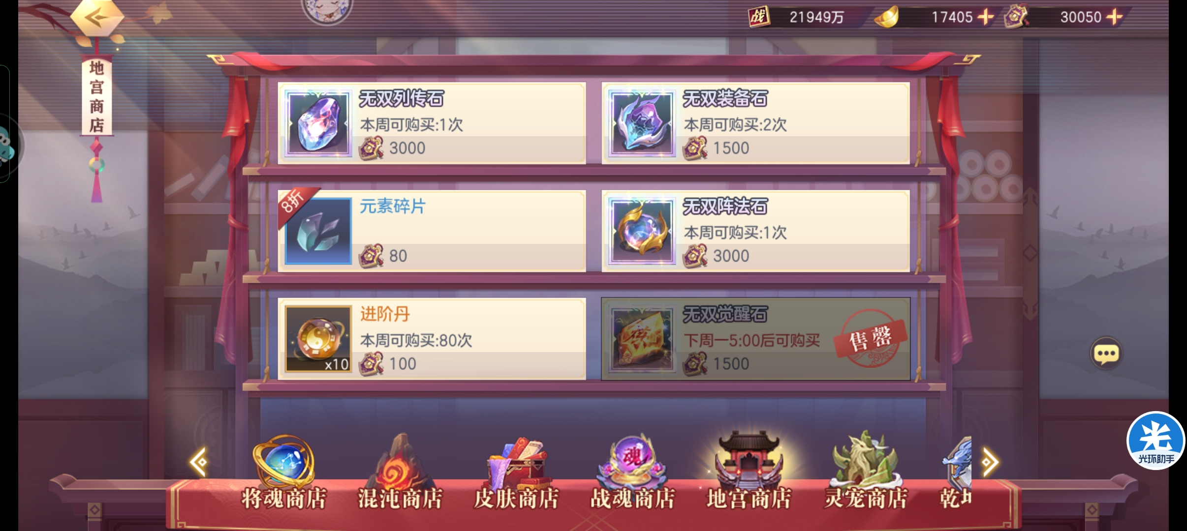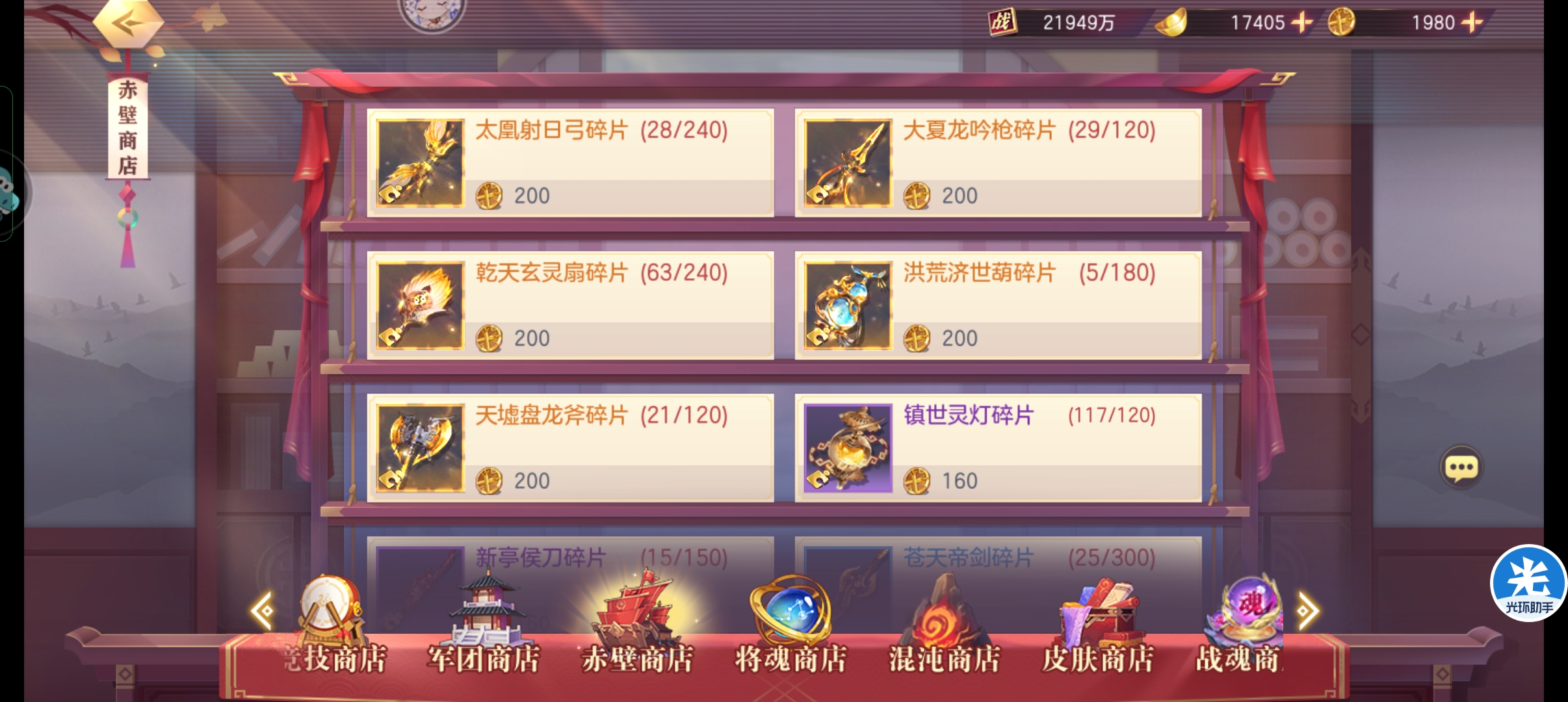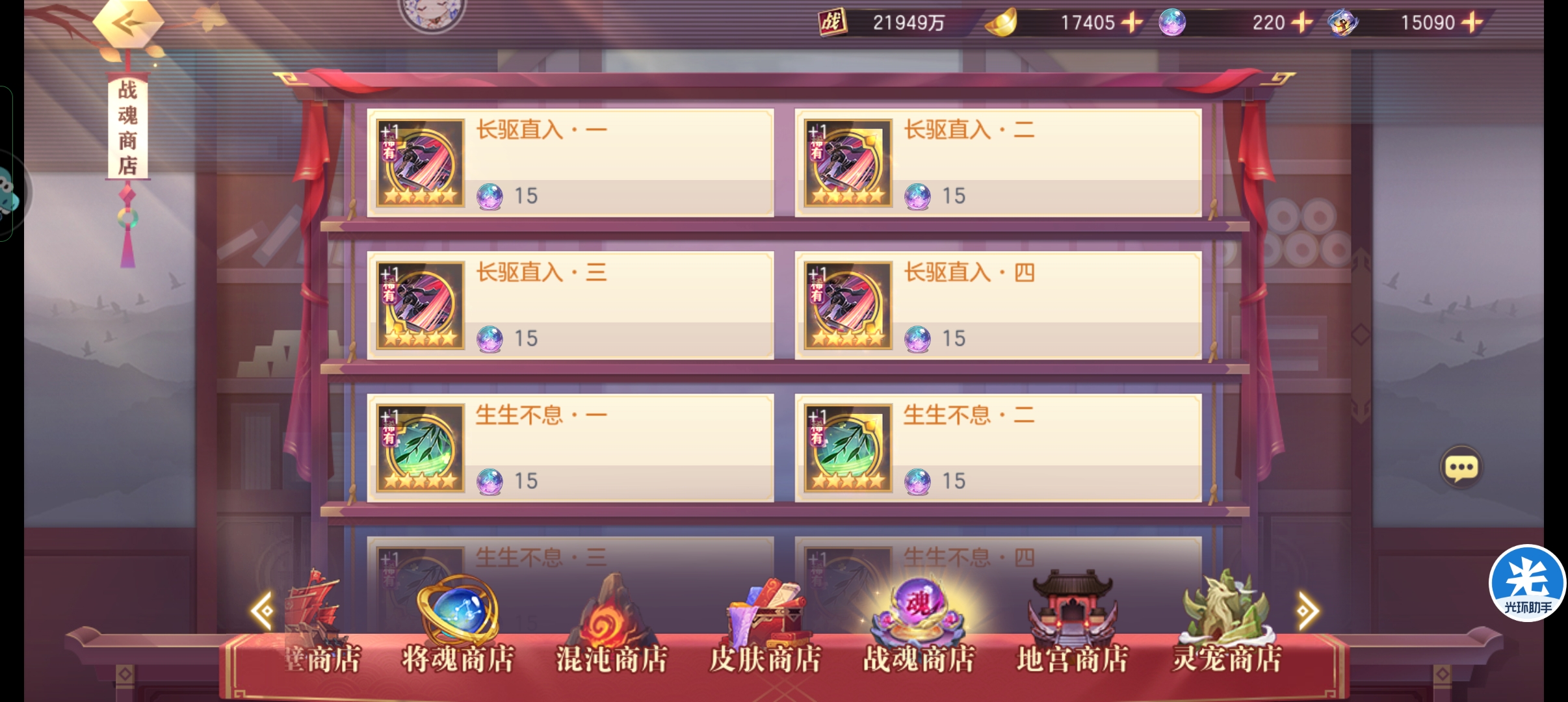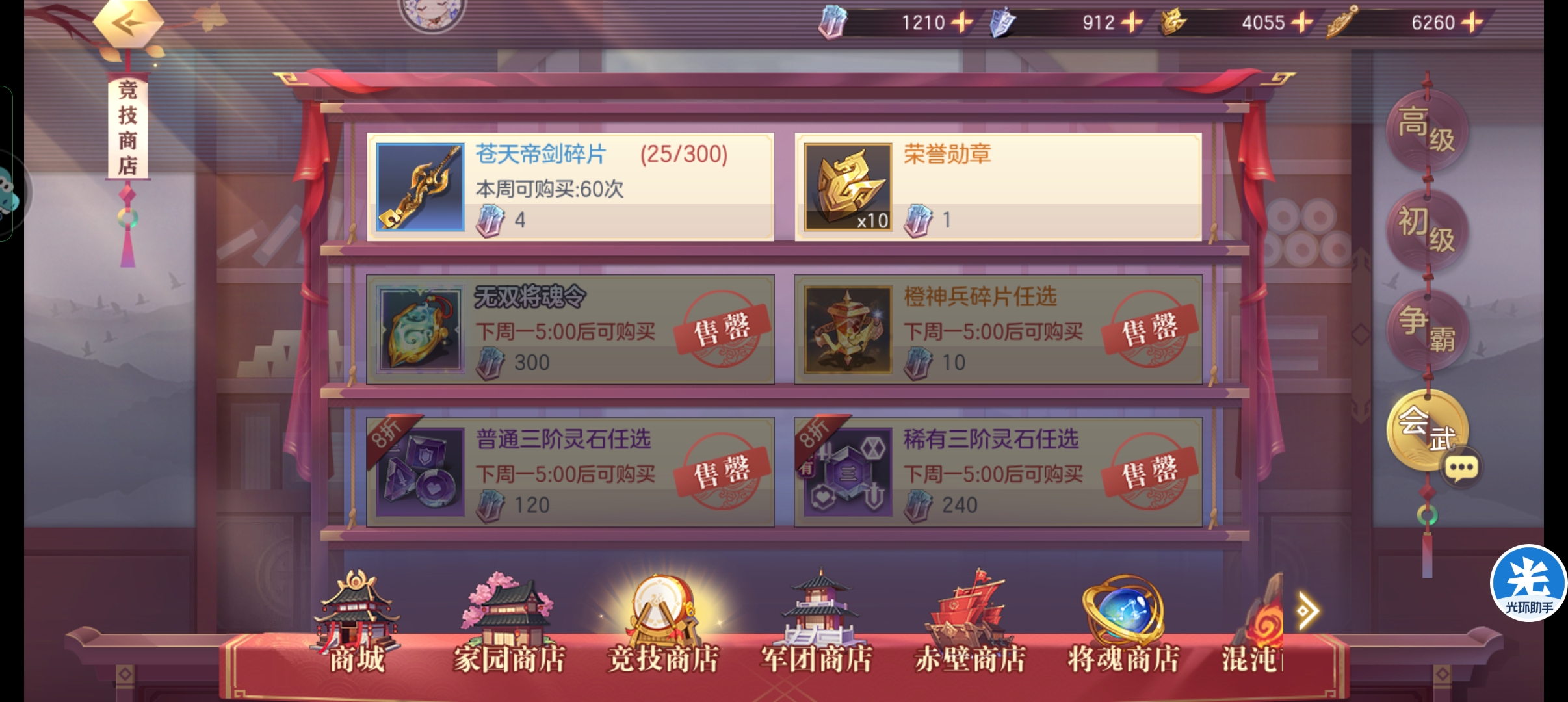 【龙魂武将商店】优先使用龙晶和龙鳞兑换完当期的魂将碎片,其他按需兑换