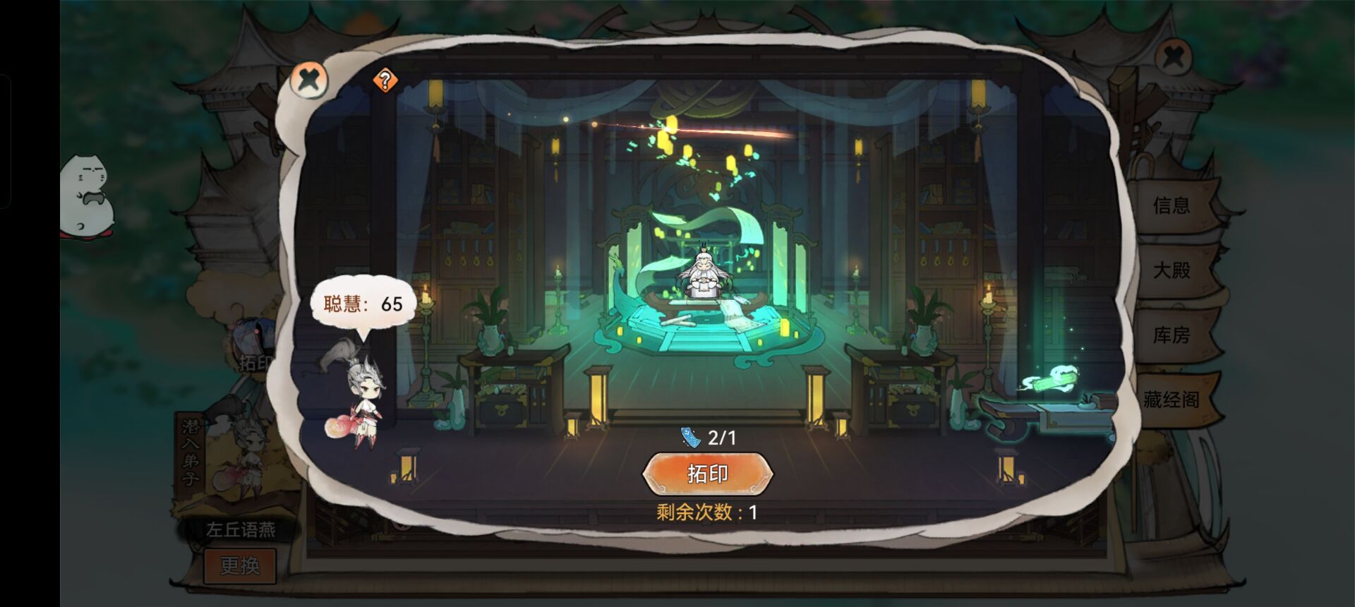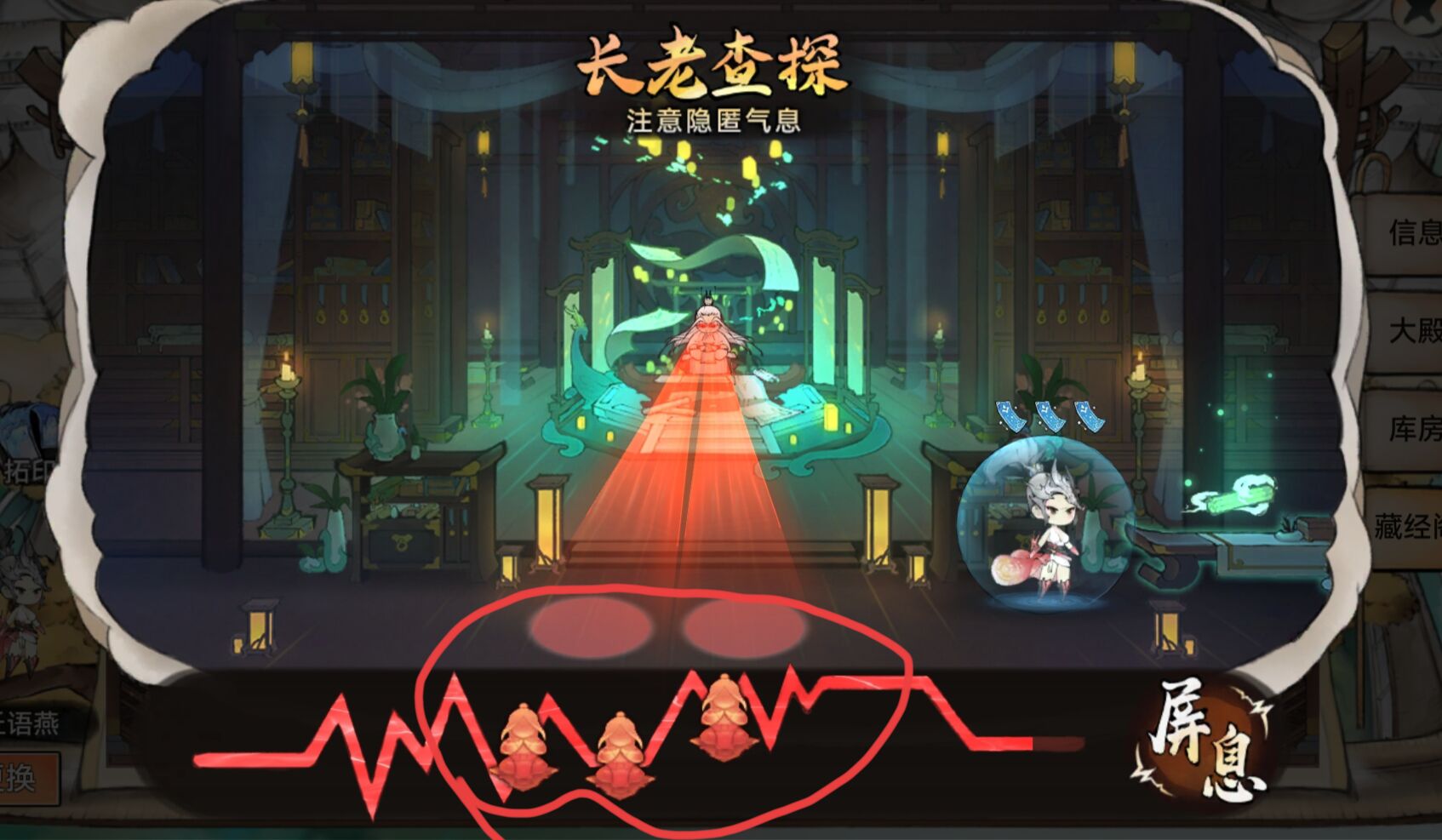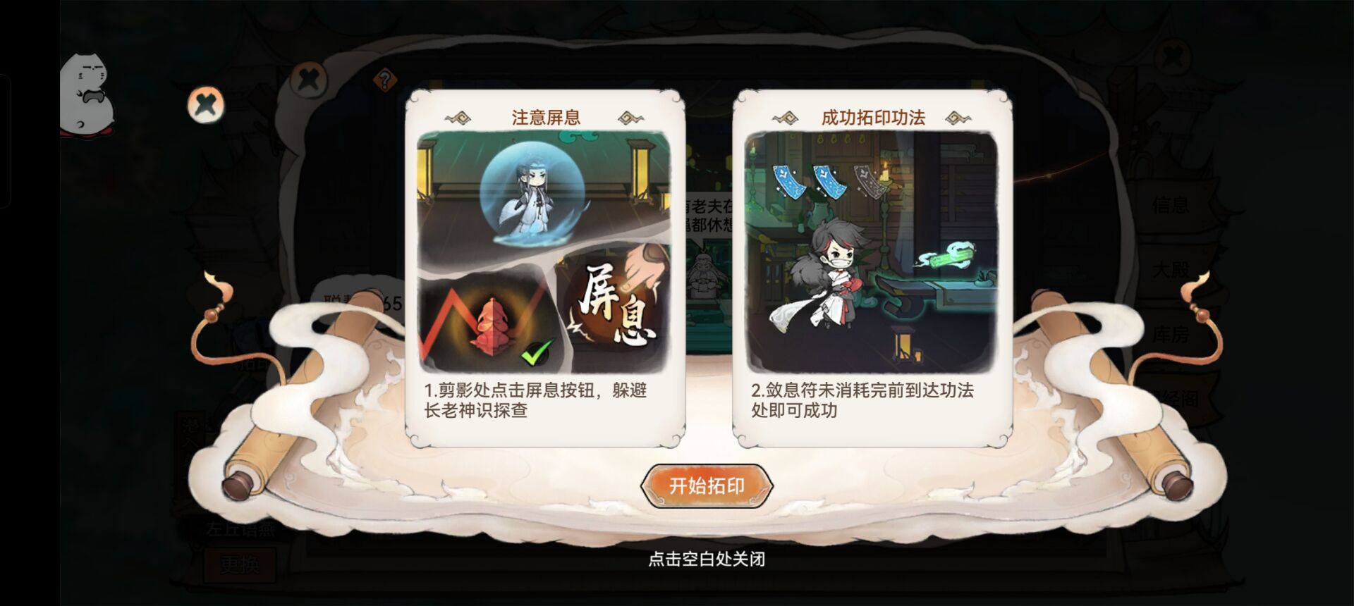 ⭐一般每次拓印都会出现2次敛息考研,来躲避长老的查探,刚加强不熟,多接触几次就会熟悉了。