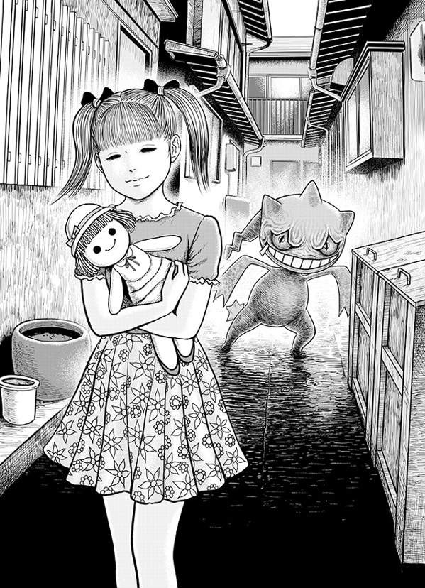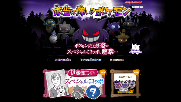 那大家知道吗?在以前万圣节的时候,《口袋妖怪》的开发商game freak也推出了一个相当“别致”的宣传活动。为了玩家展示口袋妖怪的恐怖一面,他们请来了恐怖漫画大师伊藤润二执笔,绘制周边文化衫。