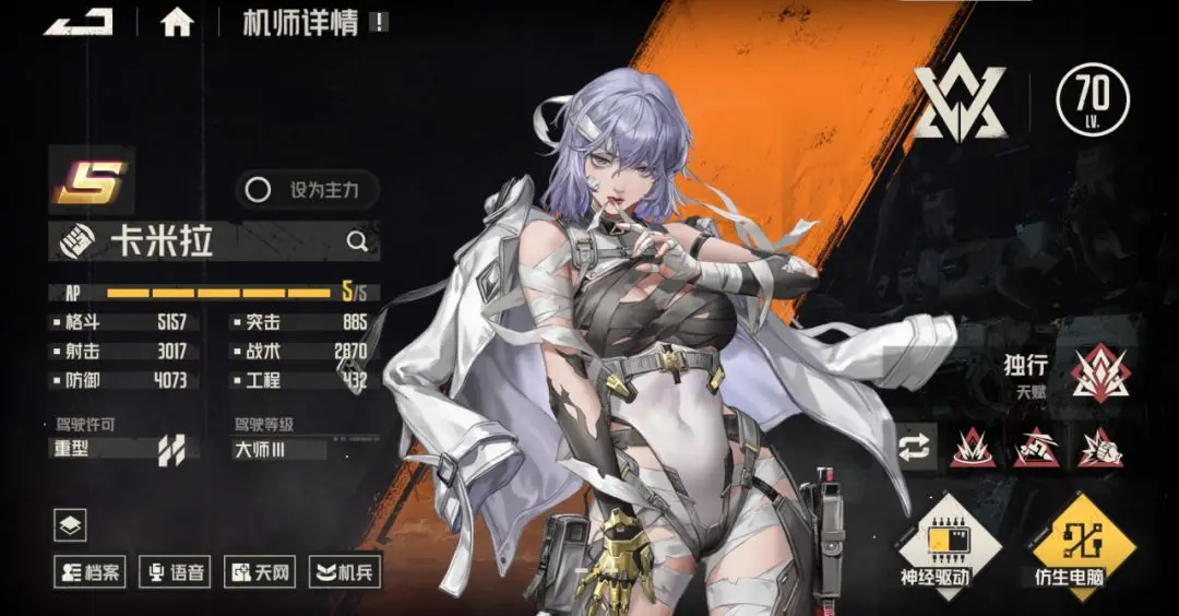 〓新增机师&机兵介绍v1.新增机师「卡米拉」,S级格斗家,可驾驶重型机兵。