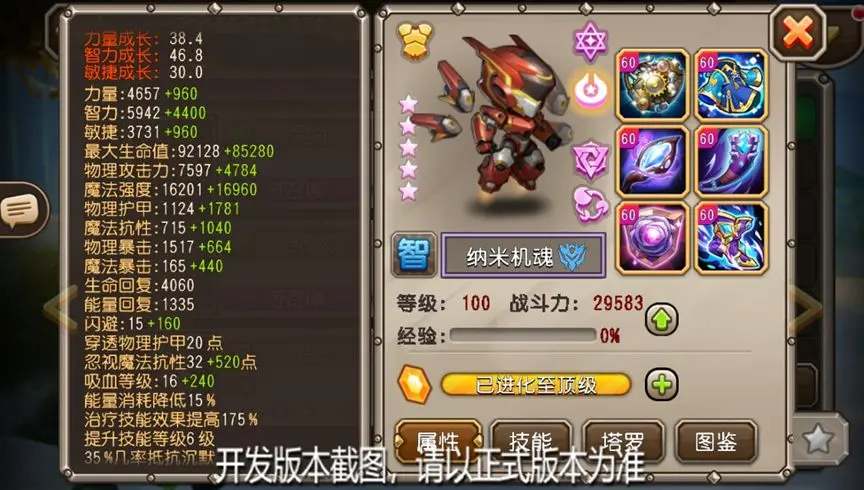 纳米机魂在开局时释放的监视机器人会持续在敌人身上存在,并且只会在主人死亡后消失,因此纳米机魂有着非常优秀的持续输出能力,再配合监视机器人的升级机制,其在敌人越少时输出能力越强。