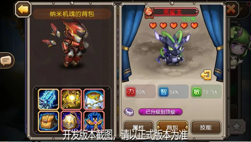 前五件装备:分别为龙骨权杖、宇宙法杖、月光法袍、旅者背包、古龙魂器;