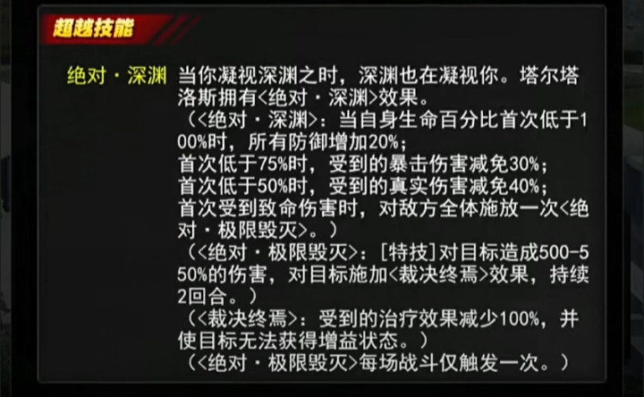 绝对·深渊 当你凝视深渊之时,深渊也在凝视你。塔尔塔洛斯拥有<绝对·深渊>效果。