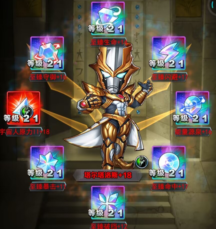解析:给的一个邪恶全家福光环。专属buff我额外给宇宙人10%的攻击,且没有25万攻击,就额外加成1%攻击商场先给宇宙人20%的攻击。对于中期还是很友好的灵魂核实的面板就可以达到250万攻击就能吃满这个被动