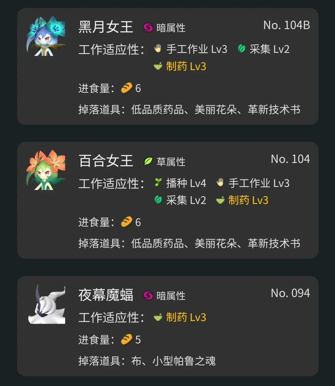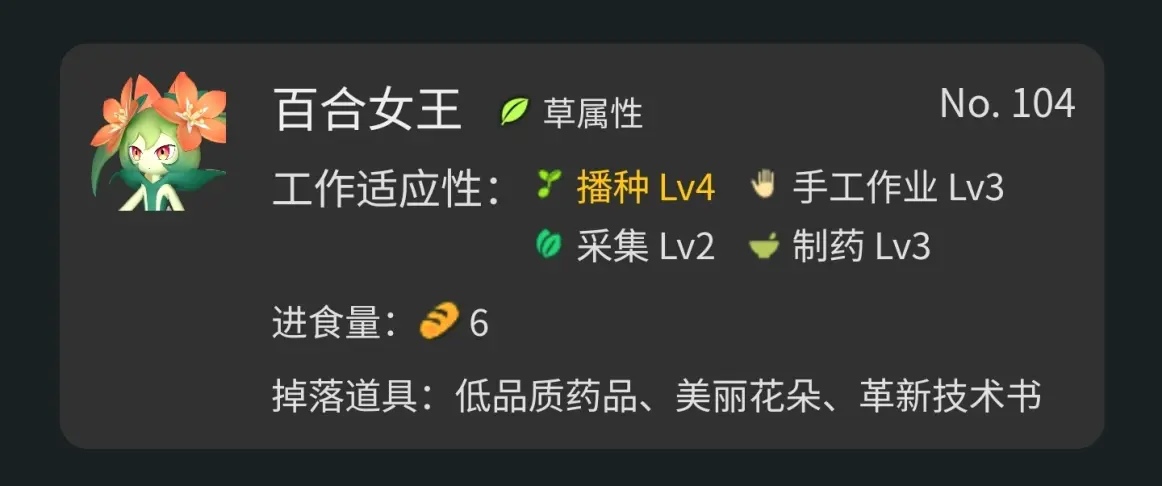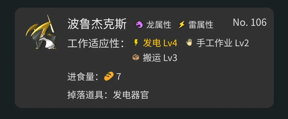 鉴于目前幻兽帕鲁不能安排固定工作,建议优先选用单一工作适应性的帕鲁,词条选用工匠精神(工作速度+50%)、节食大师(减少饱腹度下降+50%)、工作狂(减少san值下降速度+15%)、认真(工作速度+20%),小胃(减少饱腹度下降+10%)、积极思维(减少san值下降速度+10%)、社畜(工作速度+30%,攻击-30%)、自恋狂(工作速度+10%,防御力-10%),另外稀有(攻击+15%,工作速度+15%)就看运气了。