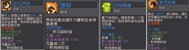 狂化灵药使用后需要立刻变为熊形态,不然会持续扣血,所以我们放最后服用。