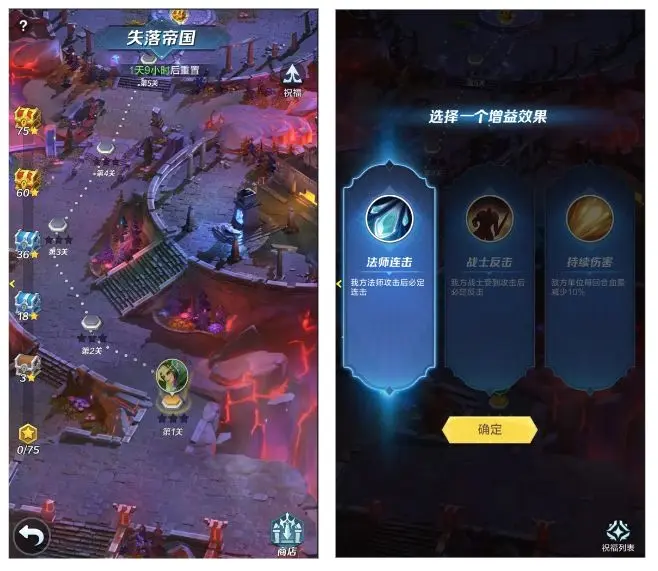 ⑤ 特定关卡挑战成功后可能出现祝福事件,可从3个随机的属性中选择1个获取,当期玩法中属性常驻生效且一直叠加
