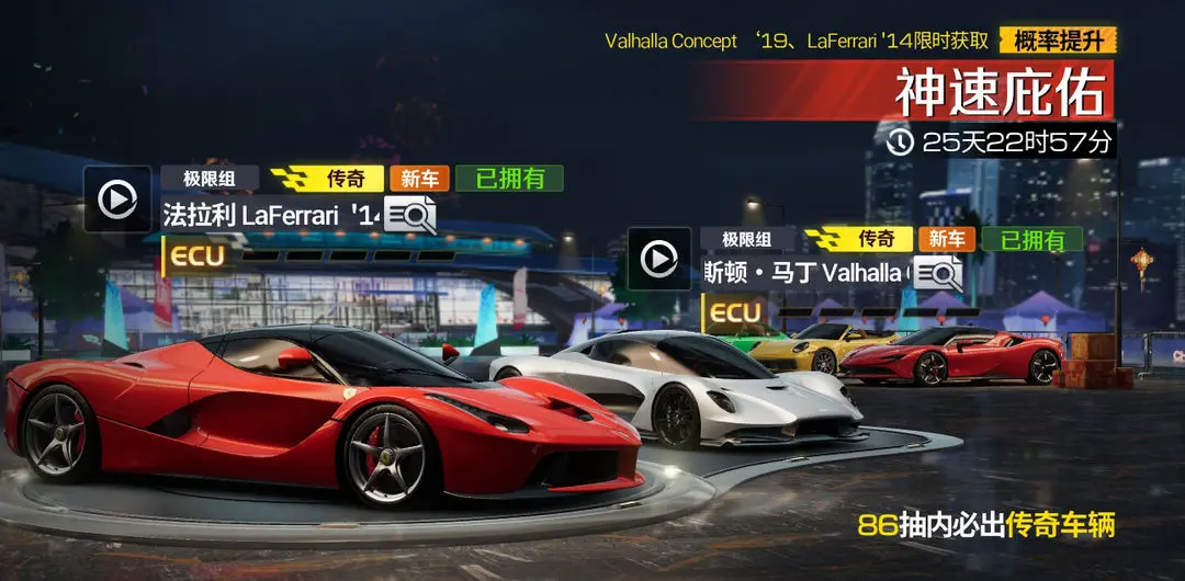 单一卡池中包含法拉利LaFerrari与另一辆传奇赛车