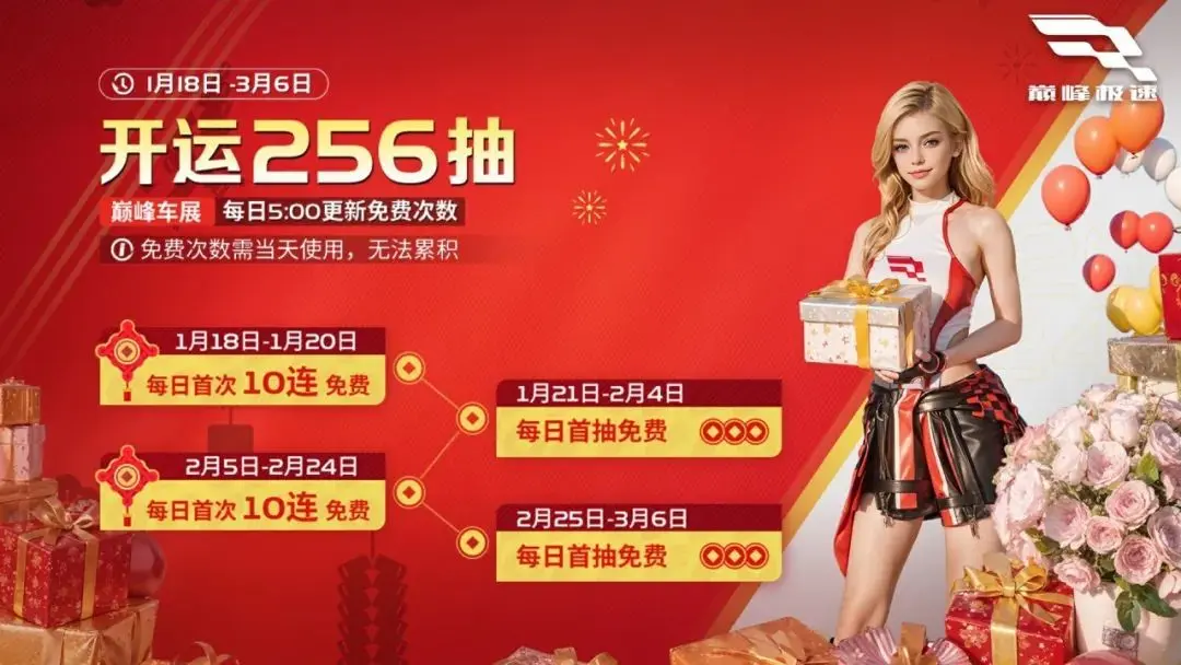 开发组将在新春期间送出相比过往赛季多出超过60抽的免费抽奖次数,只为多数车手实现自己心中的【儿法梦】。
