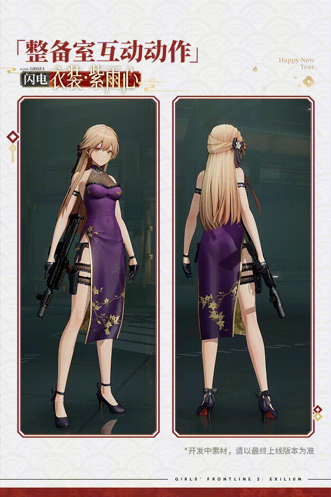 【全新外观】闪电全新外观<衣装 · 紫雨心>即将上架游戏商城!少女前线2:追放发布于 2024-02-02关注尊敬的指挥官,闪电全新外观<衣装 · 紫雨心>将于2月8日17:00上架游戏商城!本外观上架后将常驻商城。2月8日17:00~2月23日10:59期间,购买可享8折优惠。详情可于外观上架后于游戏内查看。闪电<衣装 · 紫雨心>优雅的设计与剪裁和略带神秘感的颜色,与闪电高雅的气质相得益彰。衣装——平衡了功能性与装饰性的人形服装,人形可穿着其参与作战和日常休闲活动。